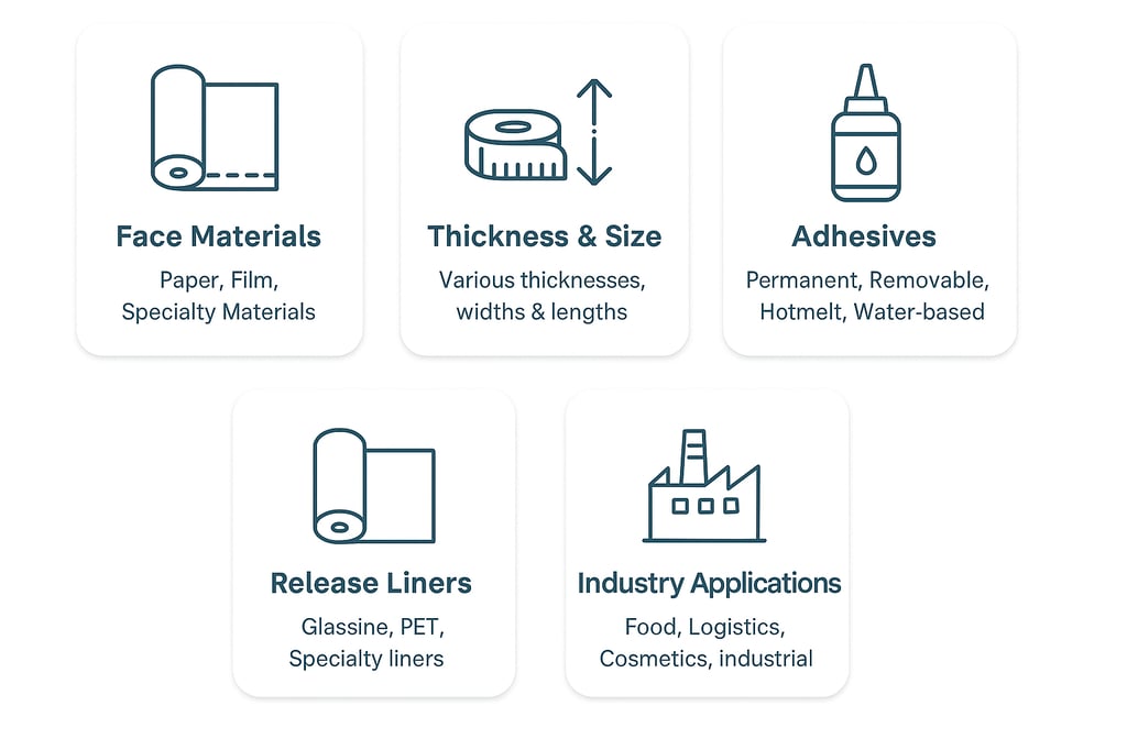 We offer self-adhesive labels, including coated paper, thermal paper, PET, PP, synthetic paper, and specialty films.